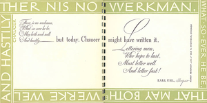 Earl Uhl, had a great sense of humor and great skill as a lettering man. Working in the Oswald Cooper tradition in the days before Gothic was king, he brought disciplined freedom, personal expression and very little white to the Caslons and Garamonds of the '30s, '40s and early 50s. 27 Chicago Designer founder: 1936-1956