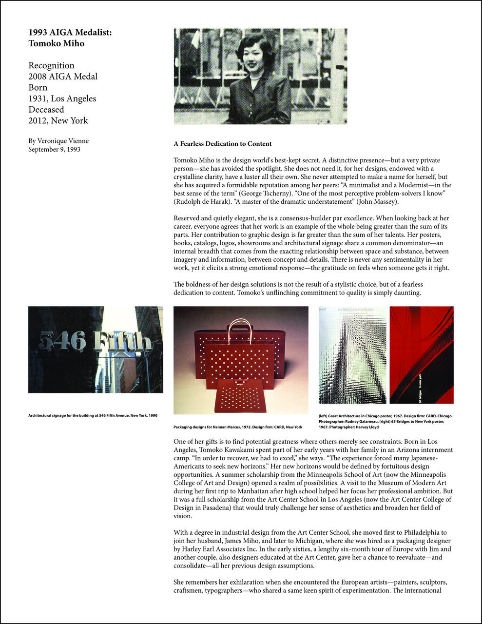 1993 AIGA Medalist: Tomoko Miho Source Veronique Vienne Date 1993 1993_aiga_medalist_t_miho.pdf (1.4 MB)