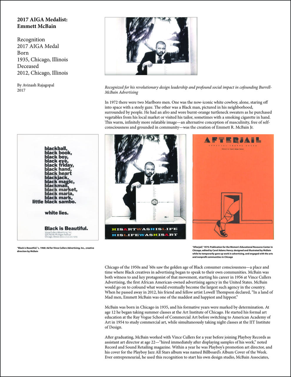 2017 AIGA Medalist: Emmett McBain Source Avinash Rajagopal Date 2017 2017_aiga_medalist_mcbain.pdf (10 MB)