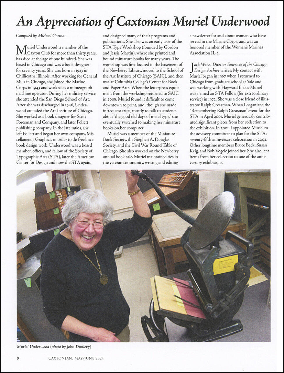 An Appreciation of Caxtonian Muriel Underwood Source Caxtonian: Journal of the Caxton Club Michael Gorman Date 2024 caxtonian_may_june_2024.pdf (2.96 MB)