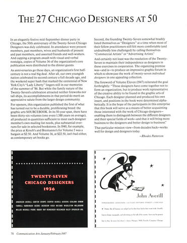 Designed by former 27 Chicago Designer Joseph Michael Essex and edited by former 27 Chicago Designer Jack Weiss, this book documents the work of the 125 cumulative members of the 27 Chicago Designers through its 55-year history. Published in conjunction with the exhibition, 27 Chicago Designers: Selling Design 1936–1991 co-curator Lara Allison said, “...without an understanding of 27 Designers, Chicago’s design history cannot be fully comprehended.”